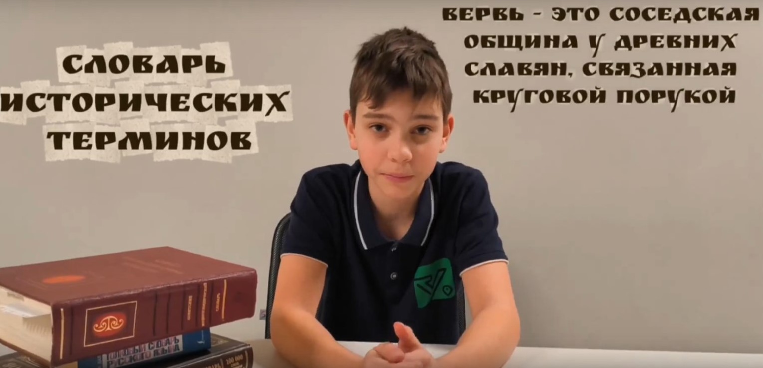 Работа Антона Пензева посвящена историческому термину «вервь»: что это такое и как организовывало быт и жизнь восточных славян. Раскрыл тему школьник через видеоролик, в котором привёл определения термина из словарей, отмерил участок земли для пахоты и наглядно познакомил зрителей с историей общины: