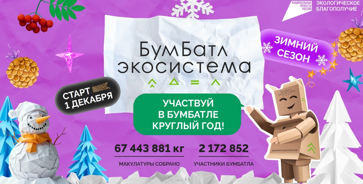 - опубликовать пост в социальных сетях с хештегами #бумбатл, #нацпроектэкоблагополучие, #экосистема, #эконовыйгод.