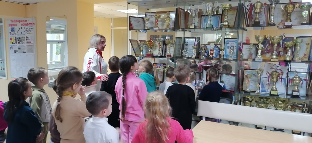 Экскурсия началась со знакомства с достижениями прохоровских атлетов, чьи имена и победы прославили их родной посёлок. Ребята с интересом слушали рассказ о выдающихся спортсменах и тренерах, это стало для них стимулом начать больше уделять времени спорту.