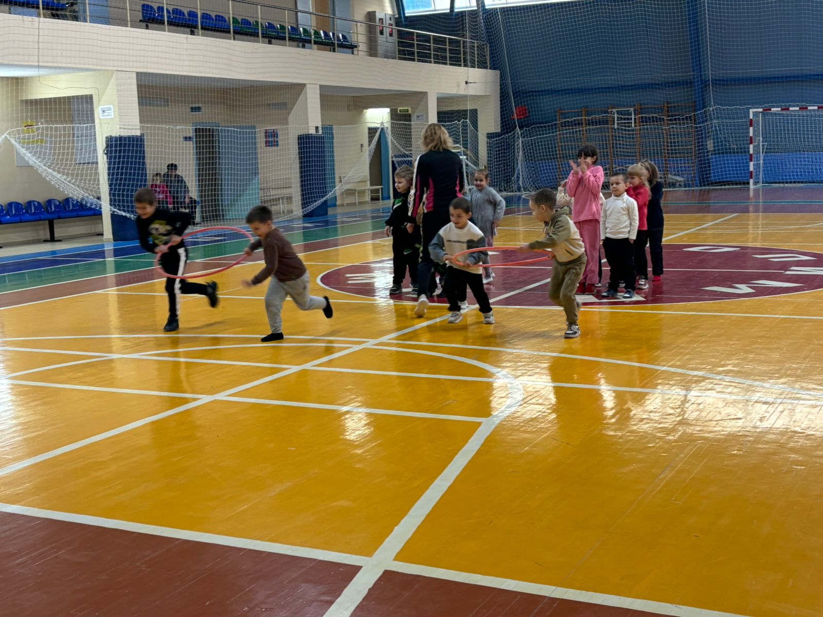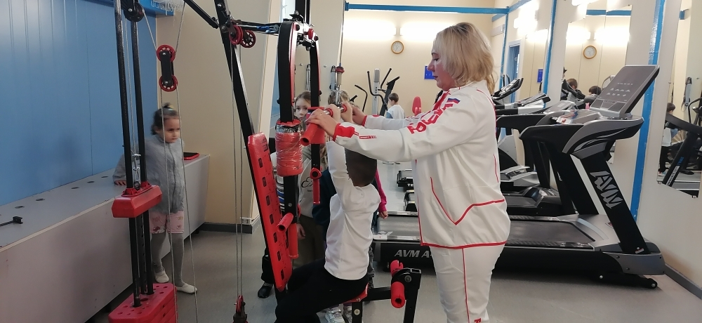 Детям показали бассейн, где они увидели тренировку пловцов. После ребята посетили тренажёрный зал, самые смелые решили попробовать свои силы на спортивных снарядах под присмотром опытных инструкторов. Также им очень понравился спортивный зал. Здесь они поучаствовали в разминке и в весёлых эстафетах.