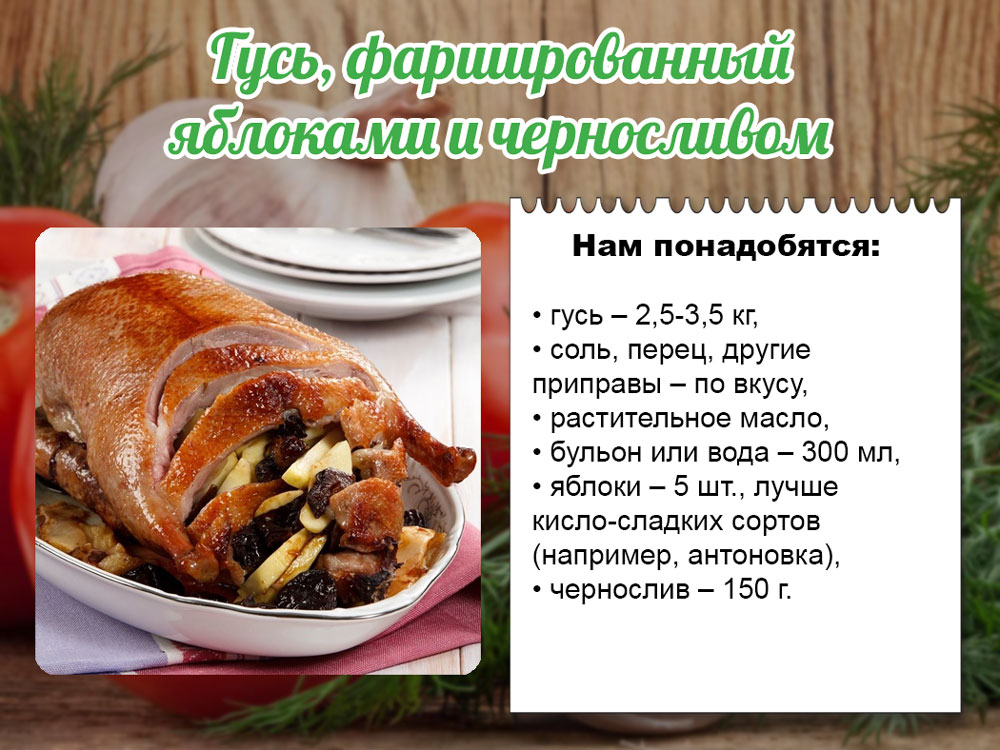 6. Налейте воду или бульон и запекайте 2,5–3 часа. Первые полчаса — при 200 градусах, далее – при 180. Периодически – раз в полчаса — поливайте гуся вытопившимся жирком.